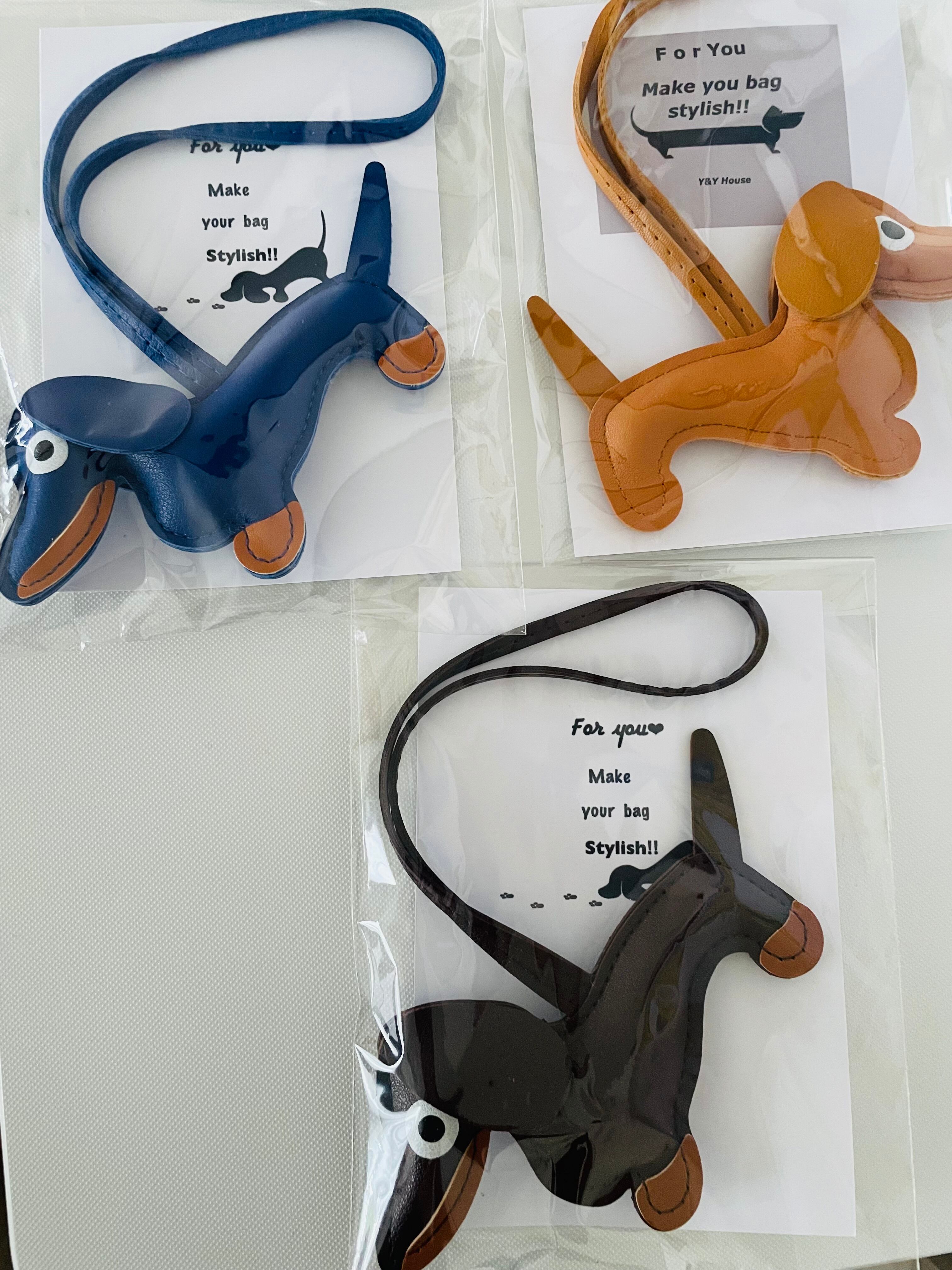 #チャーム#ダックスフンド#焦茶#薄茶#焦茶#合皮