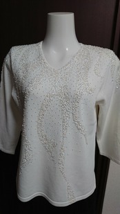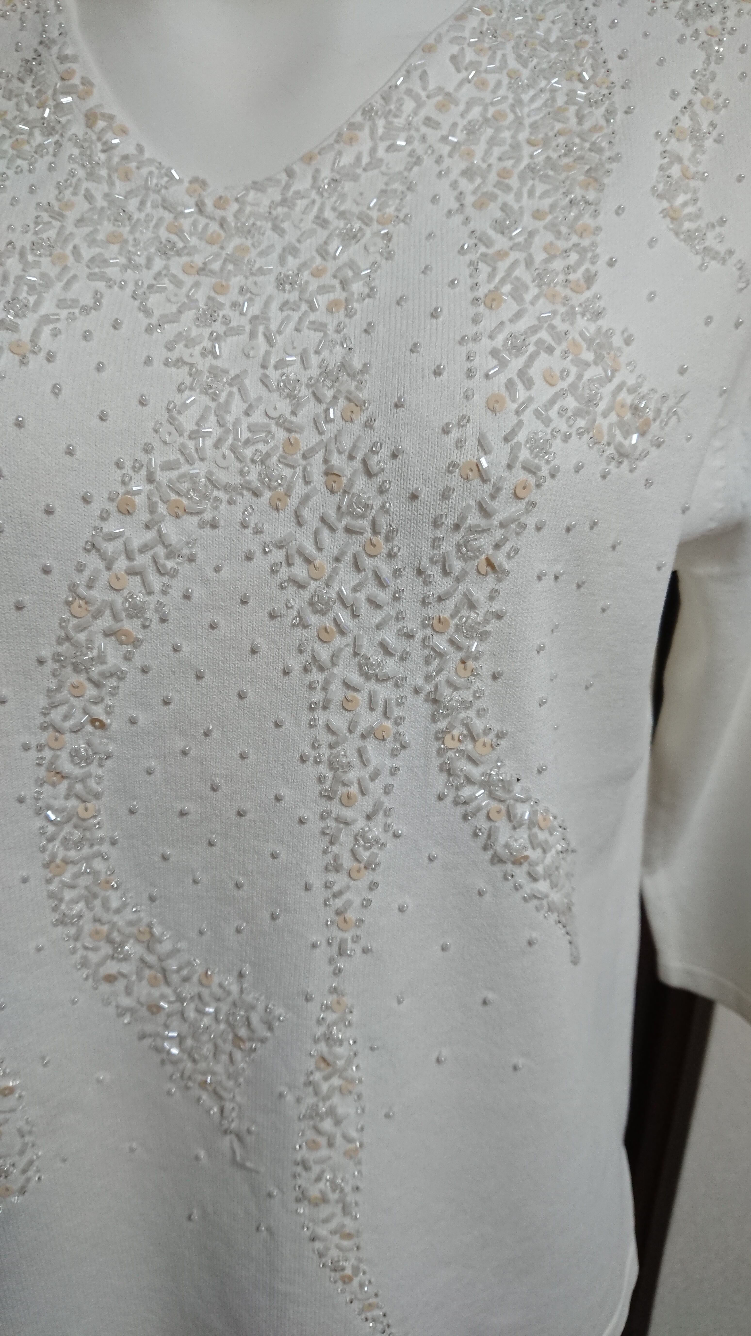 ❤️白地に同色の丸ビーズと長いビーズに、薄いベージュの小さなスパンコールがとても