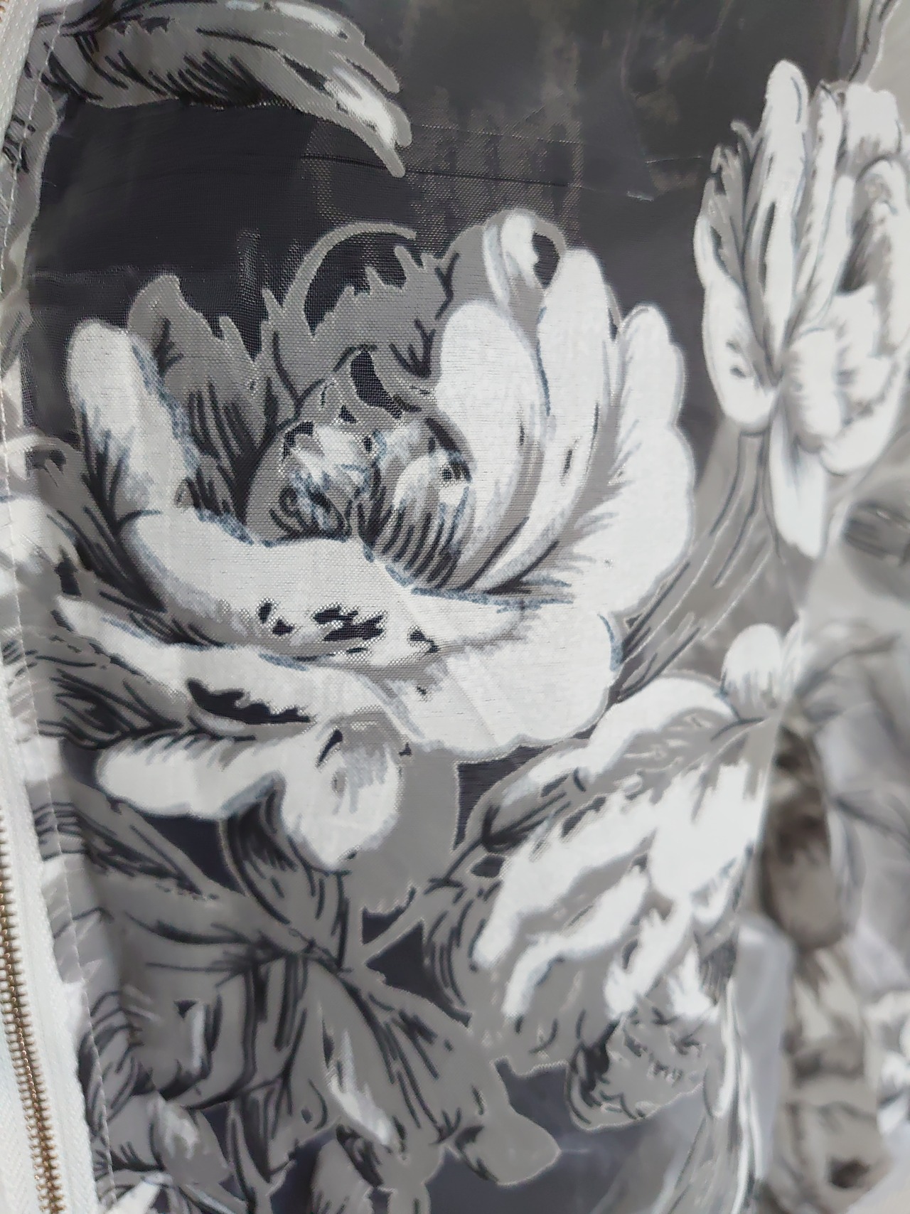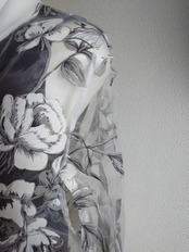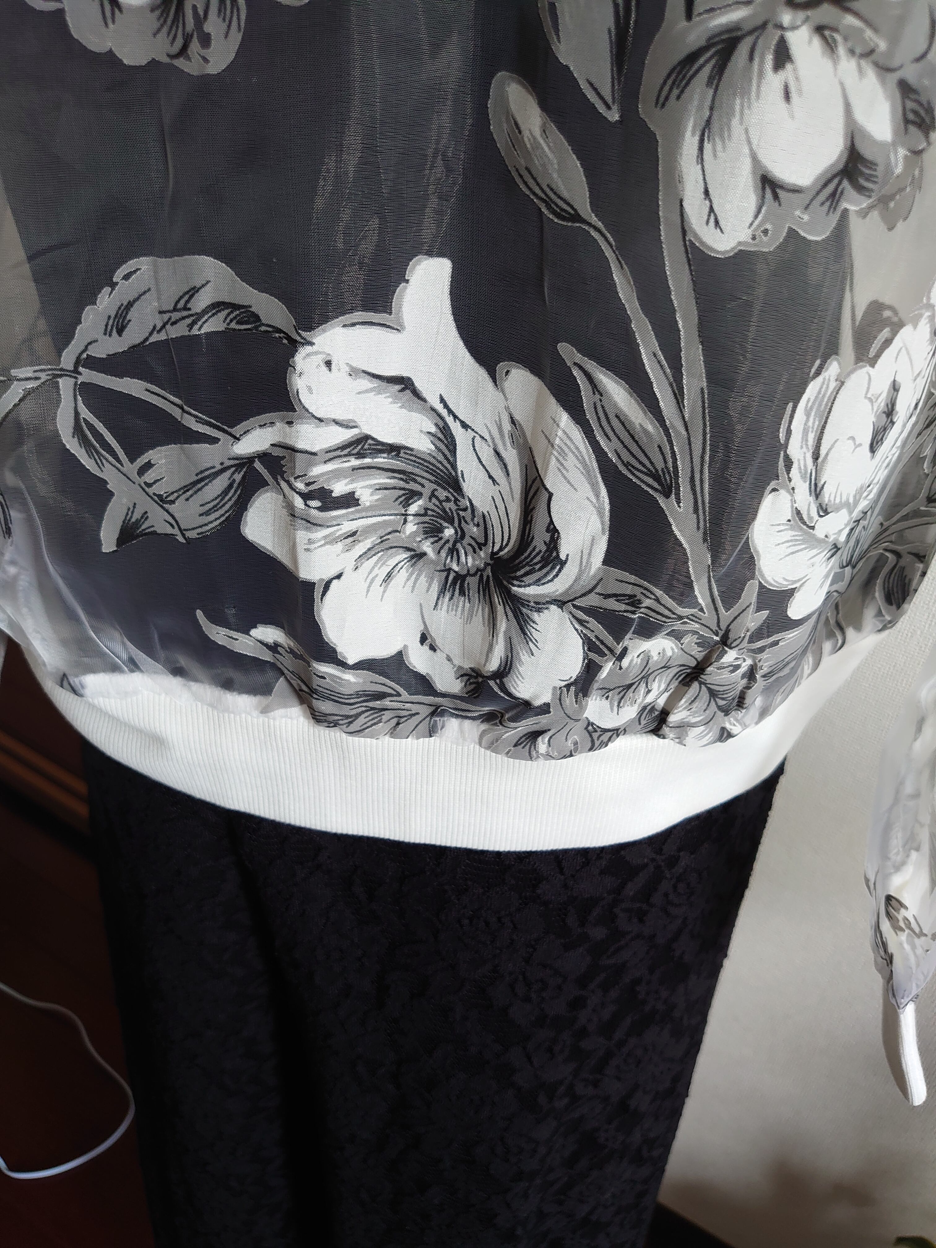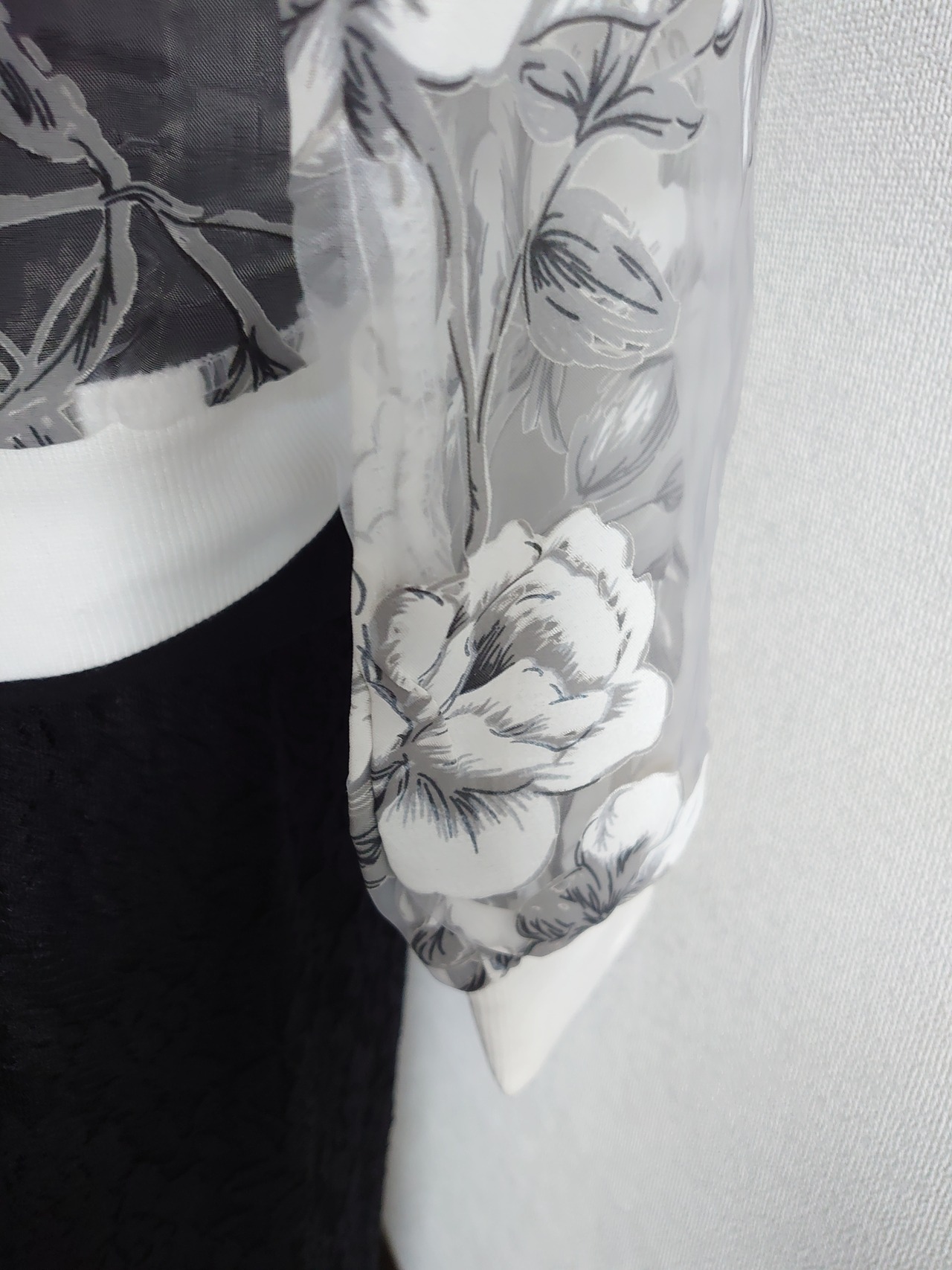 ♥袖口、襟元の白が薔薇のプリントを引き立ています。