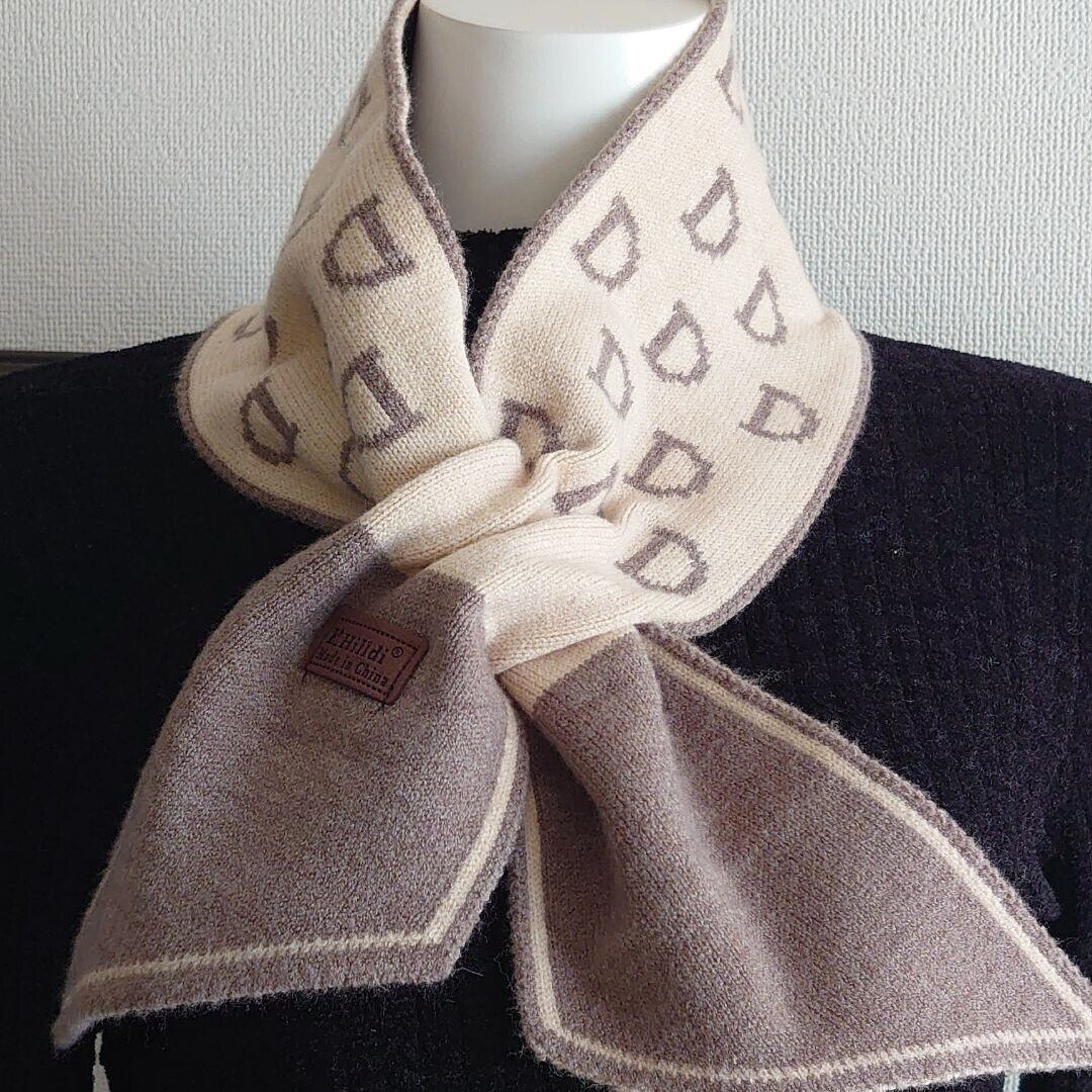 ♥ベージュにココア色の薄い色のロゴのニットのマフラーです。