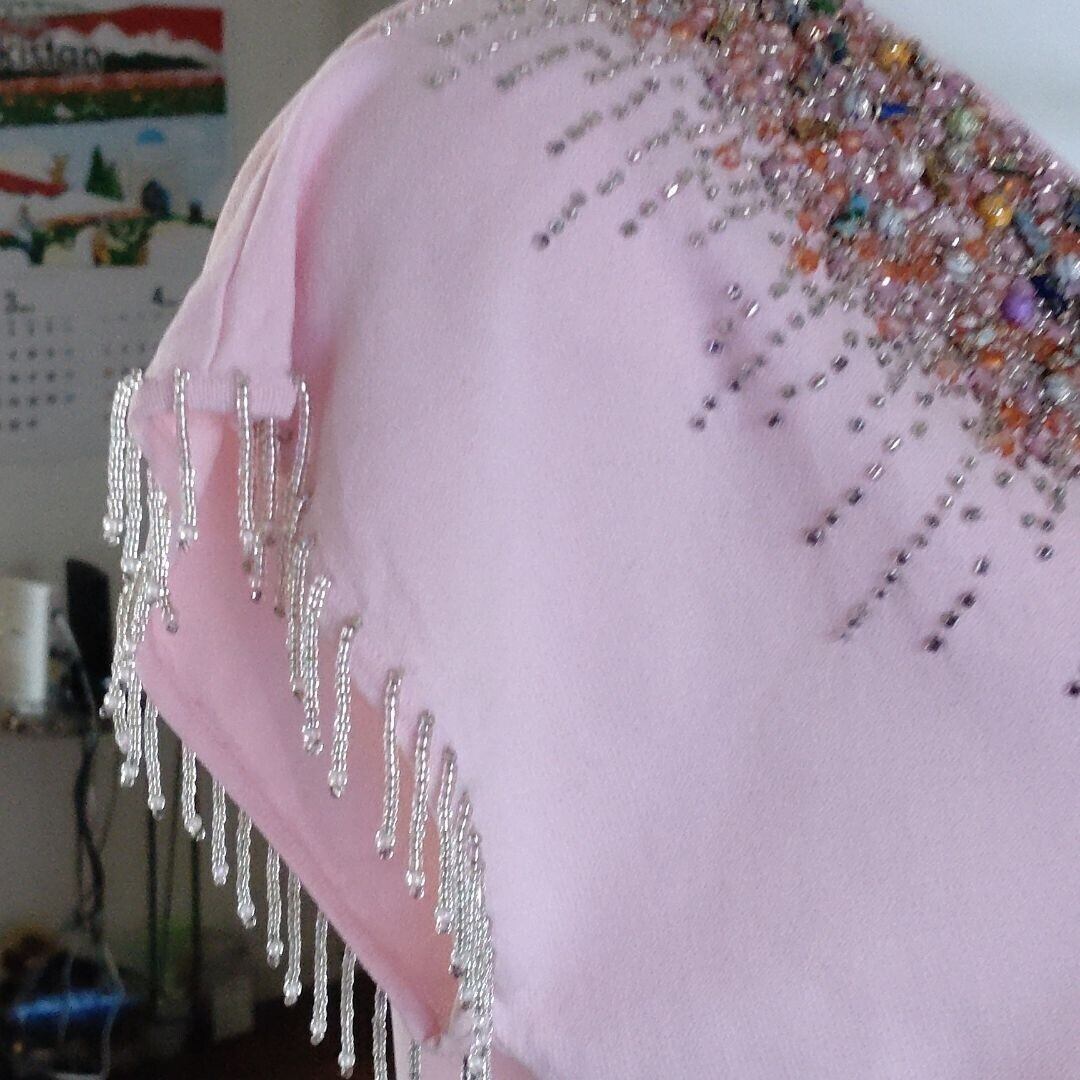 袖口と裾に2.5㎝のシルバーグレーのビーズがとてもお洒落です。