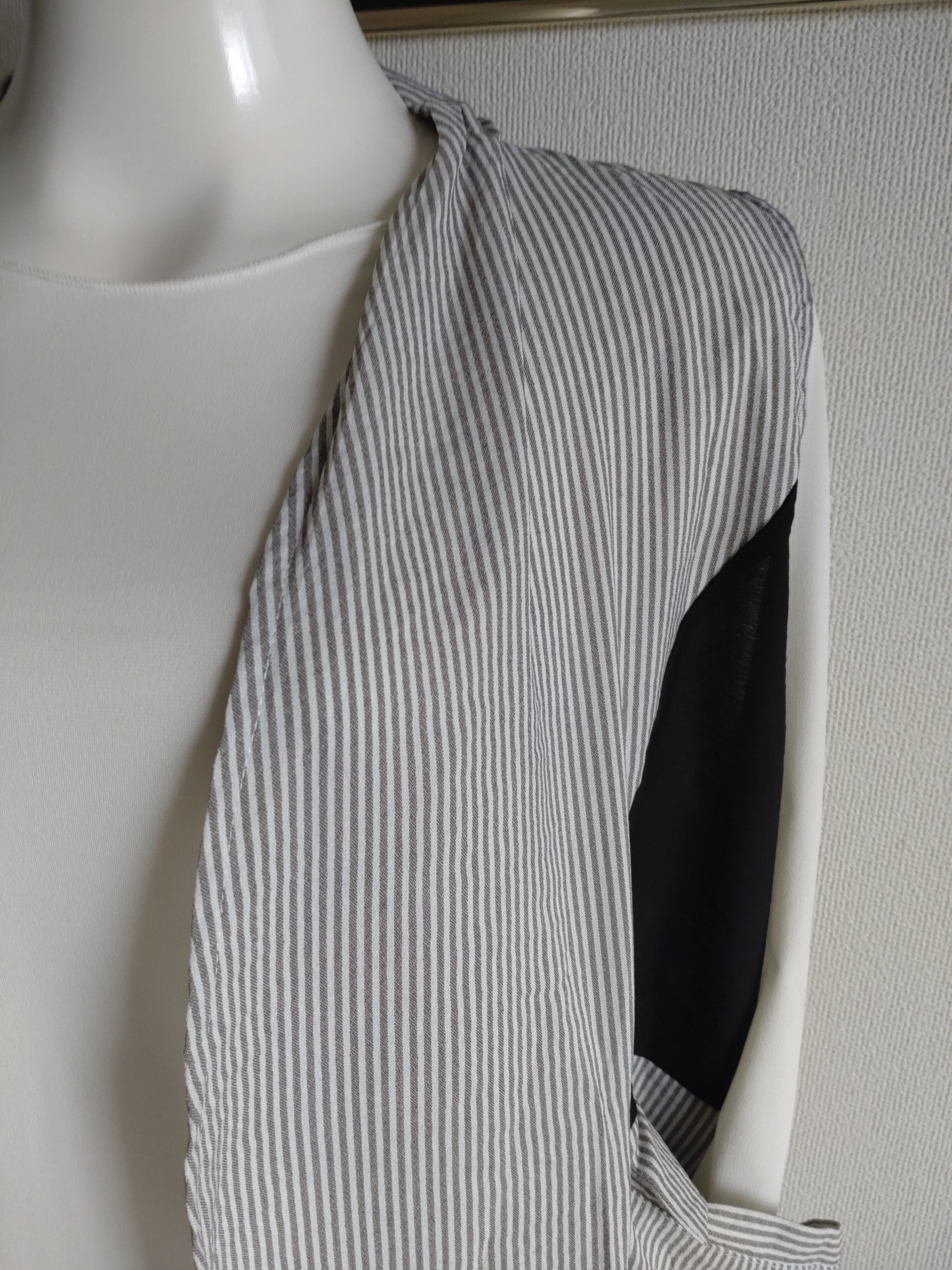 ストライプに黒とポケットがこのロングベストを引き立ています。