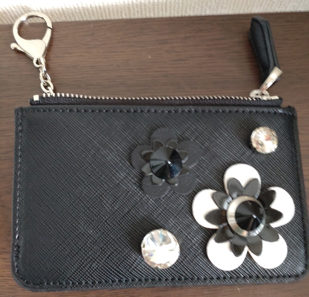 ❤合皮の黒に立体的にお花の