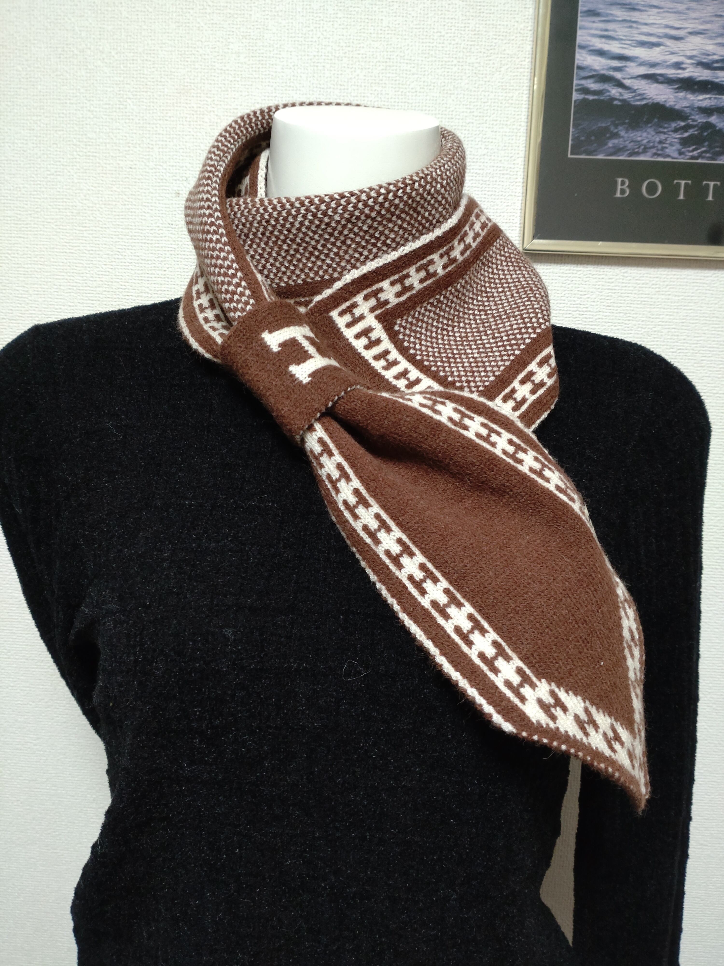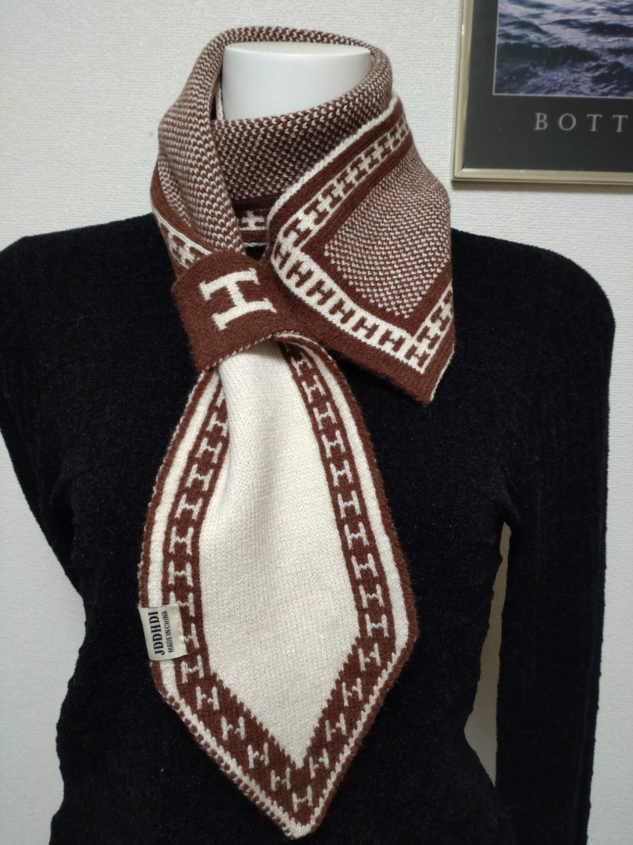 ❤マフラーの周りのオフ白に茶のHがこのマフラーを引き立て