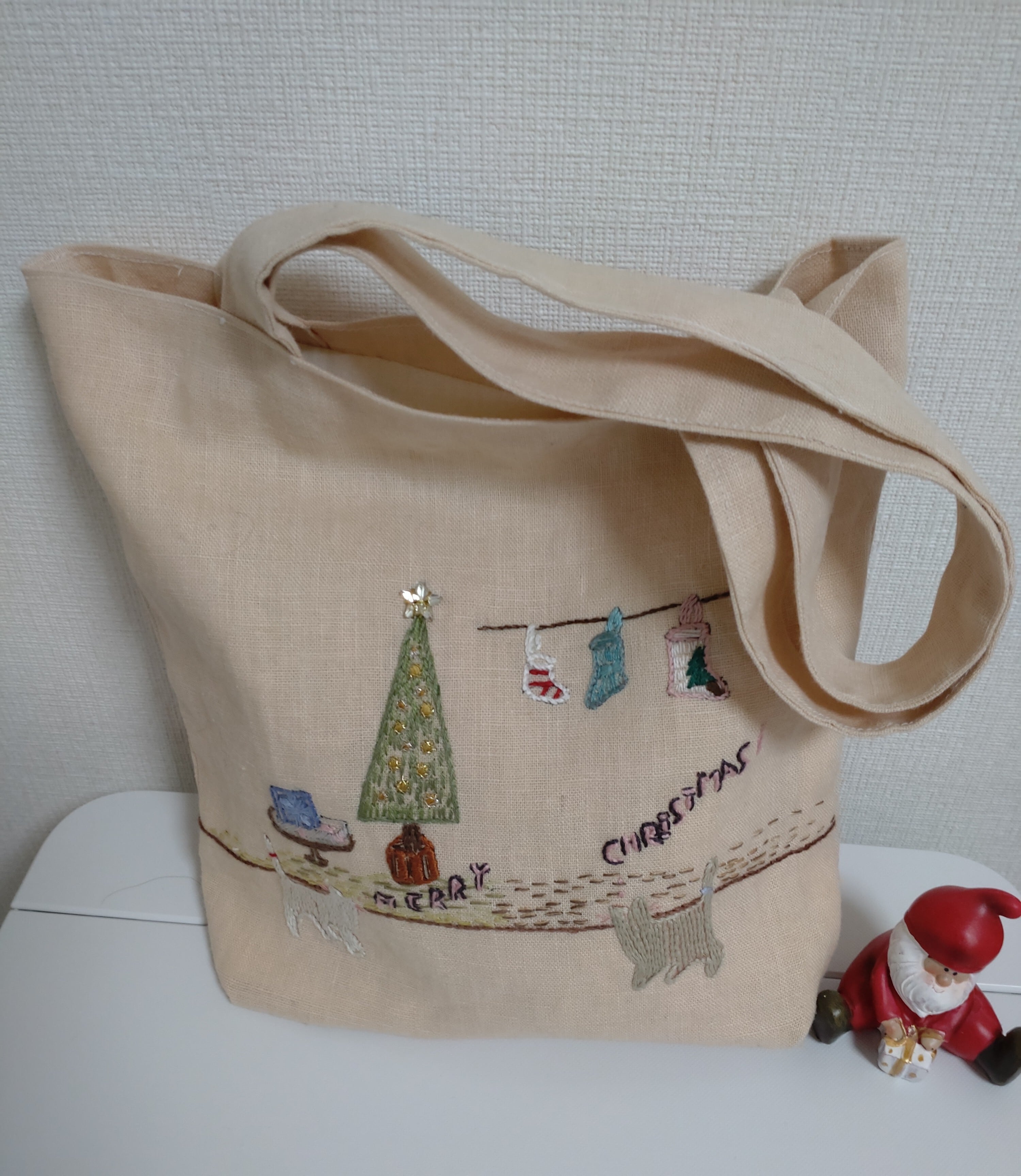 ♯トートバッグ#ハンドメイドオリジナルトートバッグ#クリスマス♯刺繍オリジナルトートバッグ