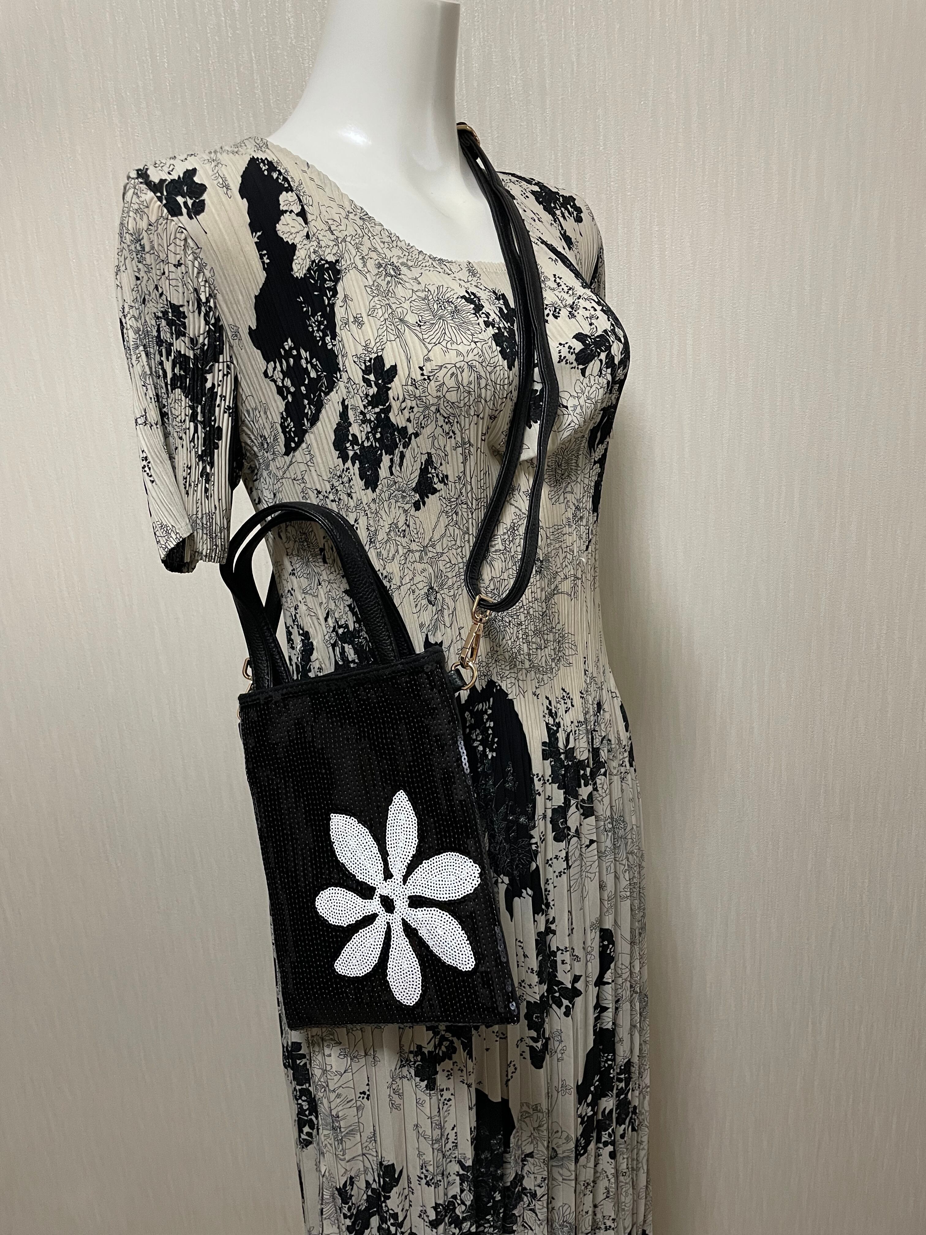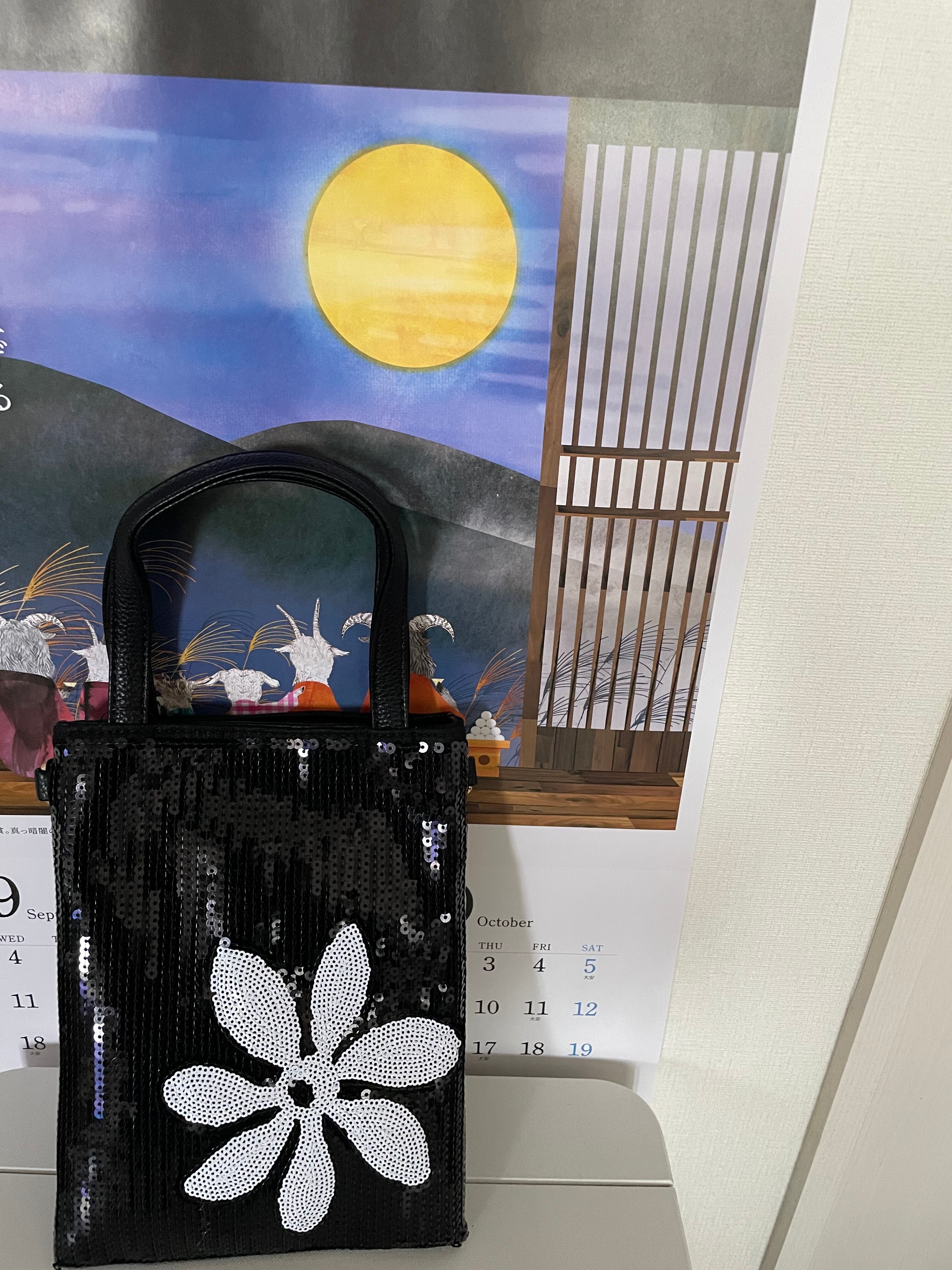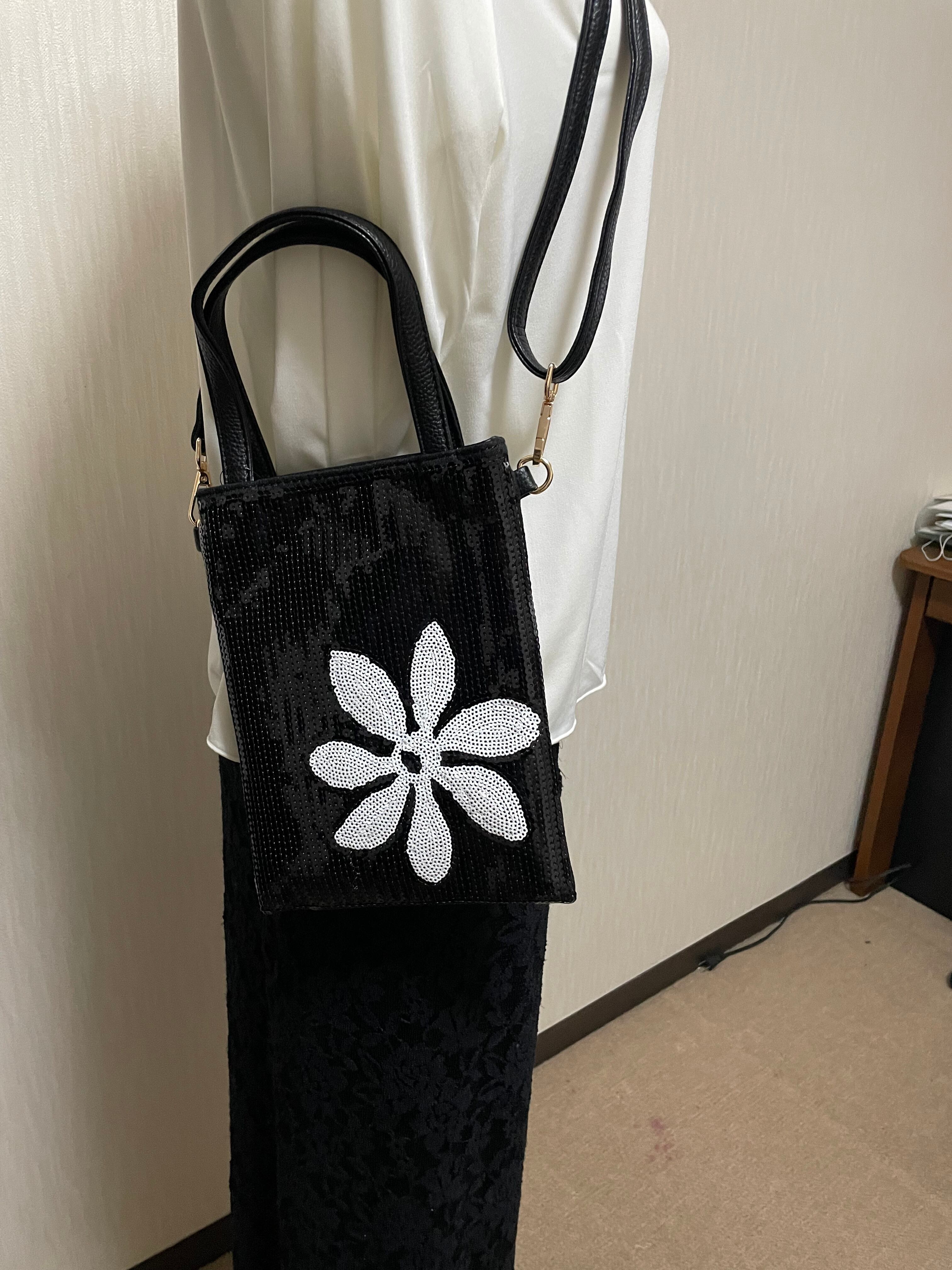 ❤黒のスパンコールに白のお花がパアーツと咲いている様なとてもお洒落なバックです。